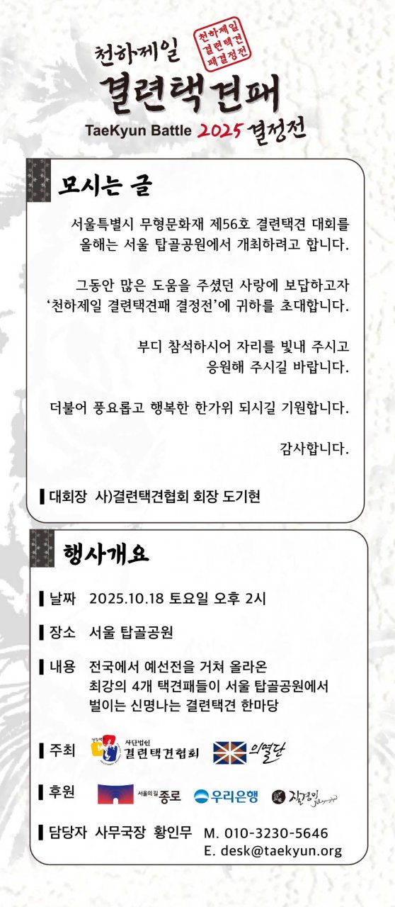 10월 18일 드디어 열립니다. 택견배틀 2025